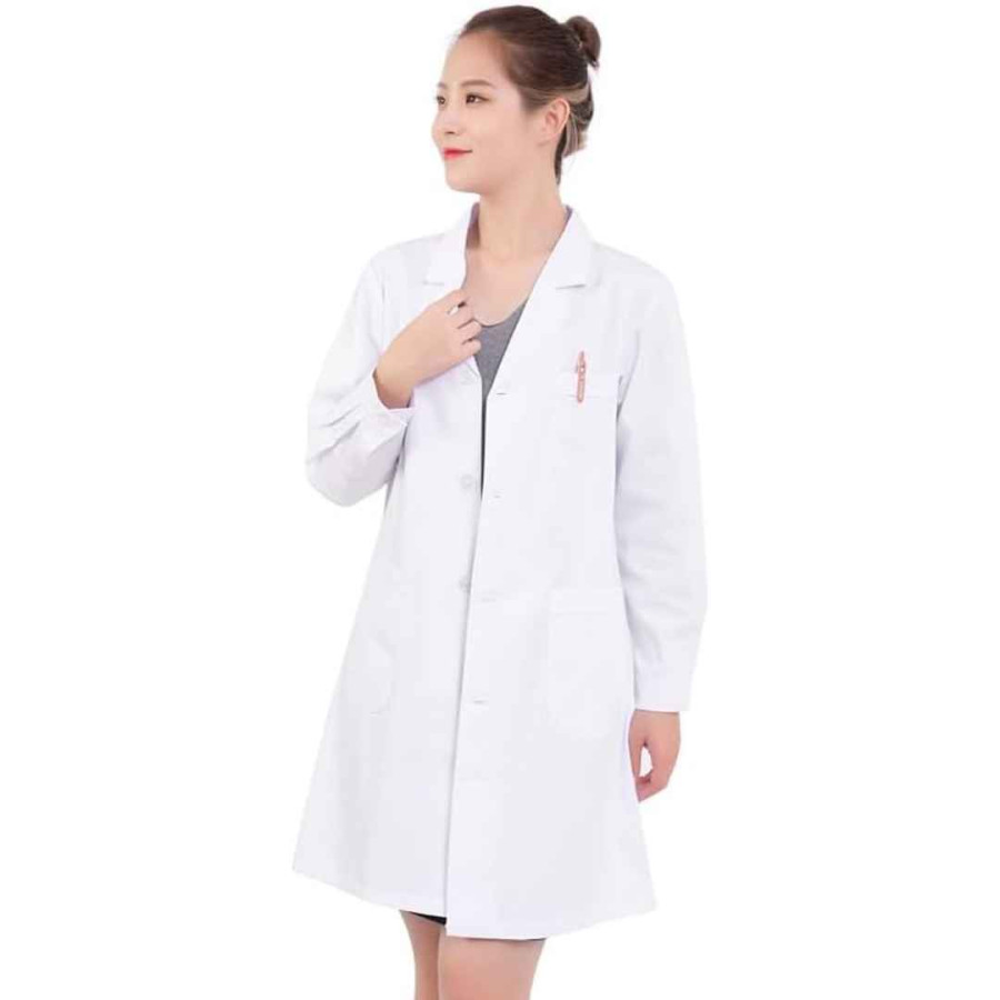 معطف طبي أبيض طويل للدكاترة والفنيين